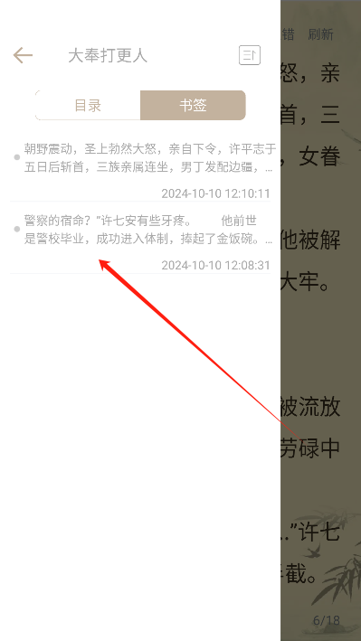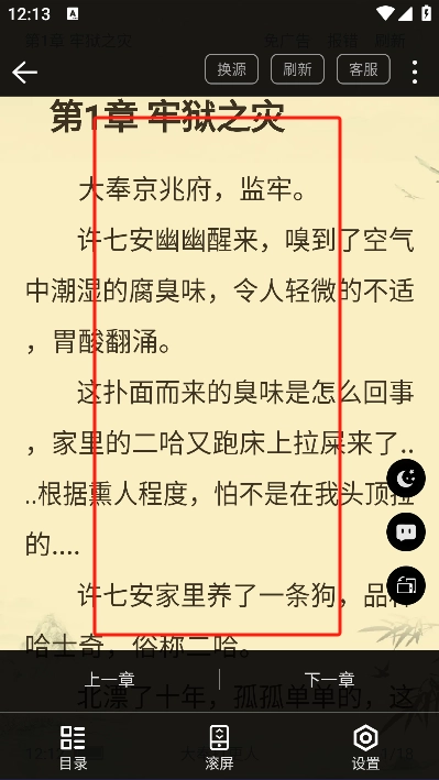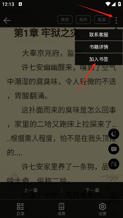 接着点击阅读界面中间区域的任意一处,这样就能调出阅读菜单。