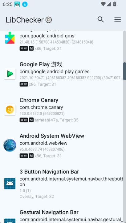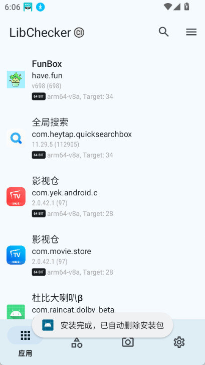 查看应用列表:打开LibChecker后,你能在应用列表里看到当前手机上安装的全部游戏和软件应用。
