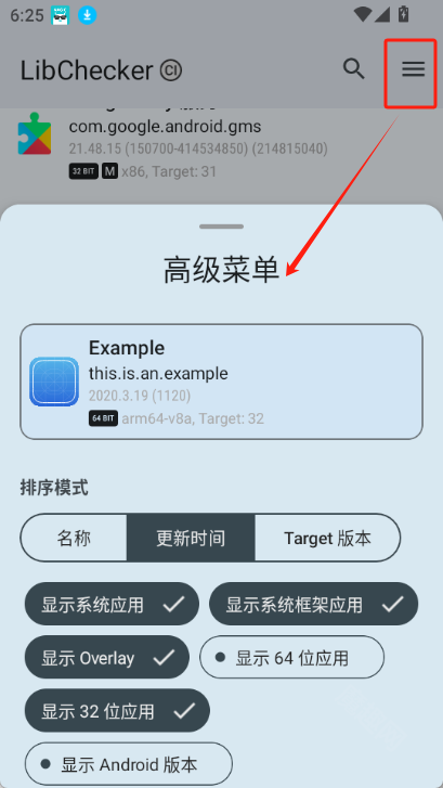 你可以通过上方的下拉菜单选择按更新时间降序、按Target API降序或者默认排序的方式。