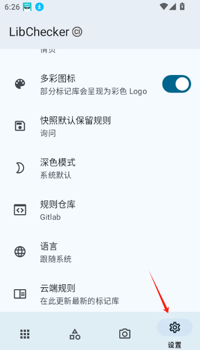设置选项:在设置中,你可以调整主题背景颜色、APK分析选项、规则仓库、语言和云端规则等。根据需要,你可以开启或关闭某些功能,如显示系统应用、更新云端规则等