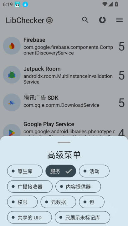LibChecker具备若干基础功能,比如可以查看并统计App的ABI架构(32位/64位),还能查看原生库以及四大组件,即服务、活动、广播接收器和内容提供器。