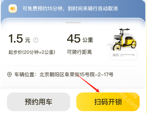 便捷取车:手机扫码就能解锁,对准二维码轻轻一扫,马上就能用车。