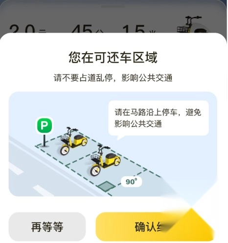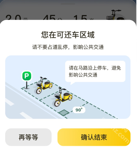 骑行结束后,请把电单车停到指定区域,再在App里完成还车和费用支付的操作。