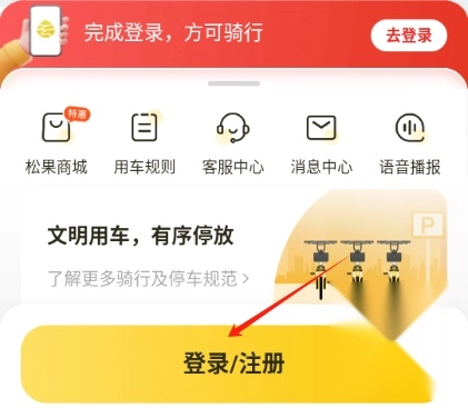 松果出行是一款共享电动车应用,用户在手机上安装其最新版本后注册账号,输入出发地与目的地并点击预约,接着扫码解锁就能正常骑行;停车操作也十分便捷,软件会显示周边的还车区域,点击确认结束行程即可完成还车。