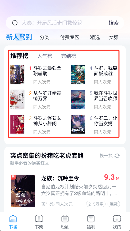 在“书城”板块,你可以借助搜索功能来查找自己喜欢的小说。