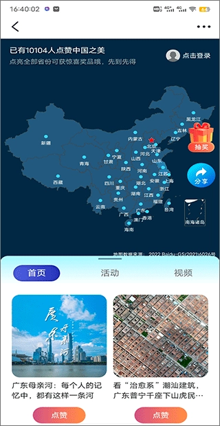 点击进入后我们就能参与活动,为中国各省点赞,要是把所有省份都点亮了还能赢取奖品呢。