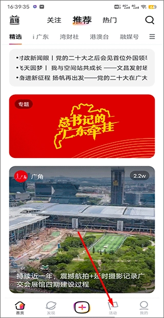 打开软件后,在下方的板块中选择“活动”进入;