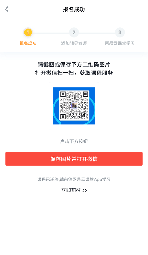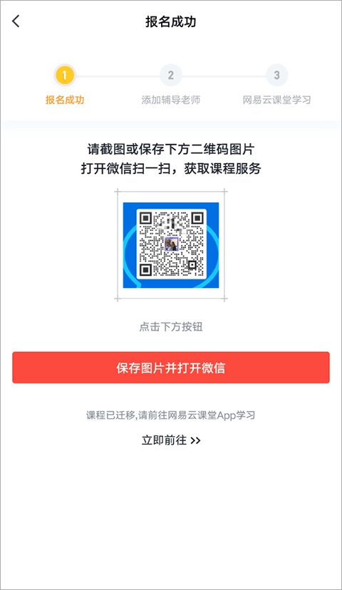 最后保存图片并打开微信添加辅导老师,目前课程已迁移,烦请小伙伴们前往网易云课程学习。