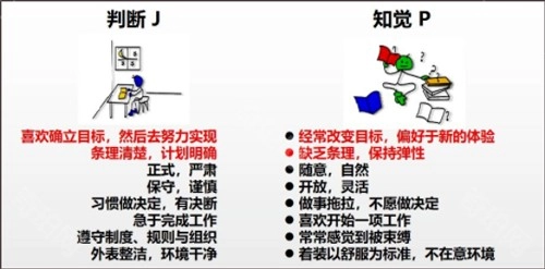 ◆依据个人的处事模式可划分为:判断型(J)与知觉型(P)