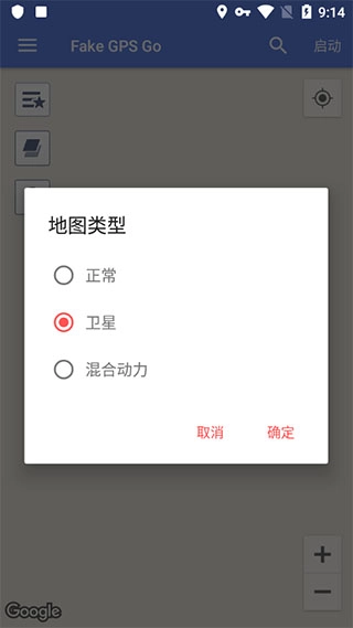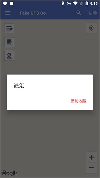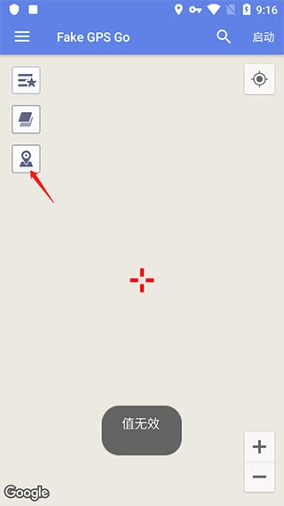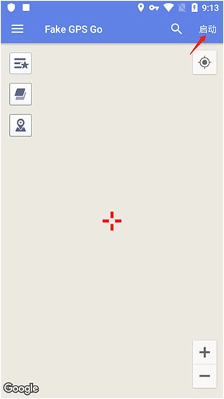 打开Fake GPS Go虚拟定位软件,点击右上角的启动按钮