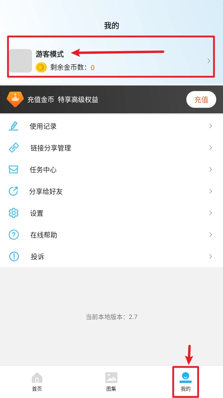 打开应用后,点击右下角的“我的”选项,进入个人中心页面,接着点击顶部区域完成登录绑定操作。