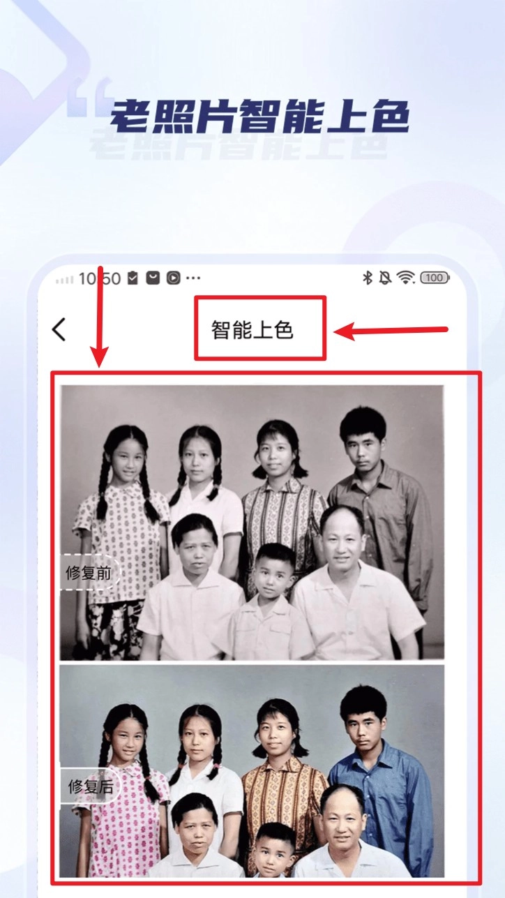 核心功能:借助智能分析技术与海量历史照片色彩数据库,精准还原契合特征及场景逻辑的真实色彩。