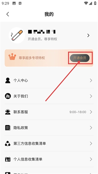 进入“我的”页面后,点击【开通会员】按钮,即可跳转至会员中心,查看各类会员套餐。