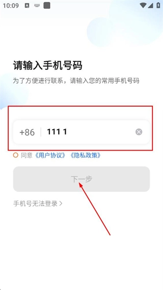 进入手机号码填写页面,输入手机号码后,即可直接进入后续操作步骤。