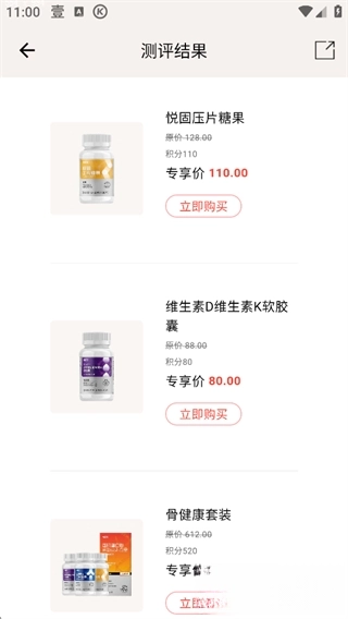 往下滑动页面,系统将依据你刚才的回答,借助大数据分析为你推荐适配的钙片。