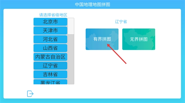 进入省级行政区拼图页面后,左侧列表可选择【辽宁省】等省级地区,选定相应地区后,右侧会呈现对应的省份拼图选项。