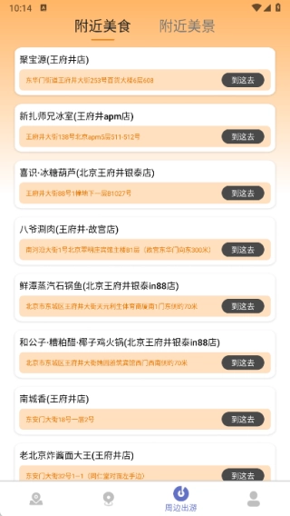 在周边出游页面,你可以了解附近的各类美食,尽情感受周边旅游带来的快乐。