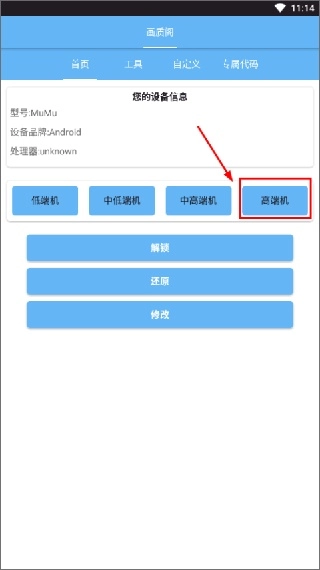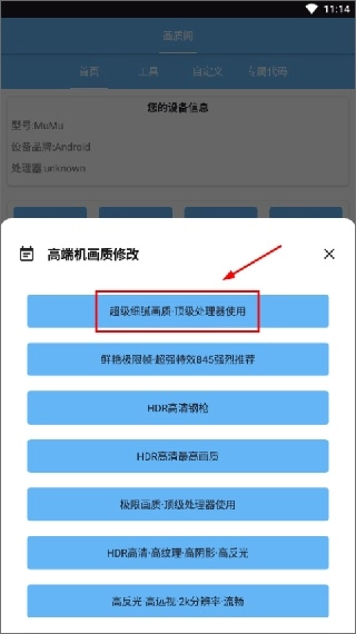 打开软件后,能根据手机的配置情况来做选择,像配置较高的机型就挑选相对应的选项。