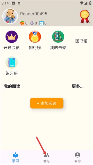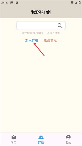 在学习页面中,点击底部导航栏里的【群组】选项,即可进入我的群组页面,为后续进行群组相关操作做好准备。