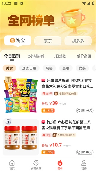 点击下方工具栏的榜单,就能快速查看各大购物平台的热销产品。