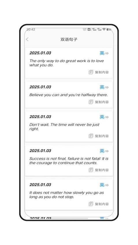 用户能够阅读每日在线推送的双语句子,以此积累更多经典语句。