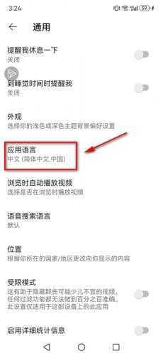4、选定目标语言(切换语言后,推荐内容会优先匹配该语言区域的视频资源)。