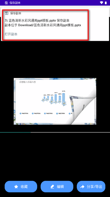 2、打开PPT效果视频后,即可查看所有PPT页面,随后点击分享并导出即可。