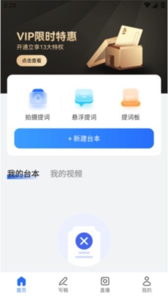 然后在主界面会看到需要新建台本的提示,你可以根据自己的需求进行使用。