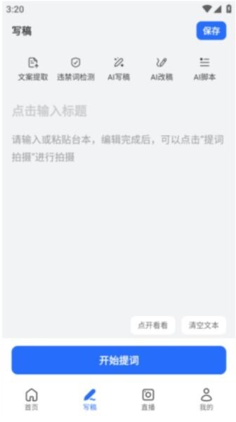 5、【AI写稿/改稿】提词相机除了拥有基础的提词功能外,还整合了先进的AI技术,开发出AI写稿与改稿功能。这一创新性的功能,能让用户在拍摄视频、开展直播或是进行演讲的过程中,更轻松地获取高质量的稿件辅助。