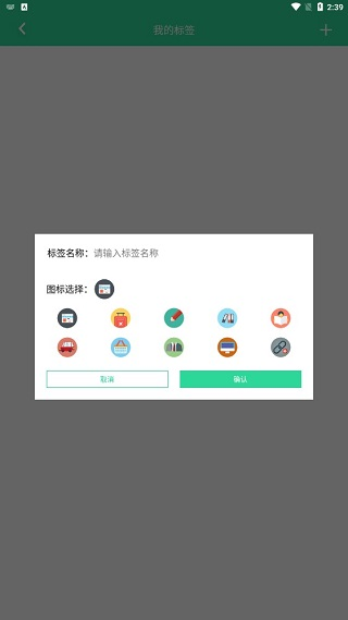 然后点击“+”号,输入标签名称并挑选一个图标,以此区分不同的标签分类。