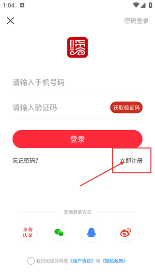 3、在登录界面里,点击【立即注册】按钮,就能跳转到注册页面,为账号注册操作做准备。