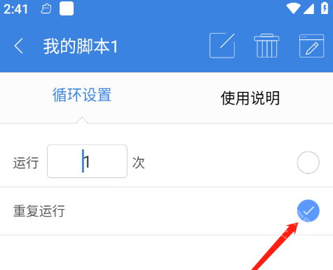3. 在弹出的菜单里,选择“重复运行”这一选项,就能把脚本设置成循环执行的模式。