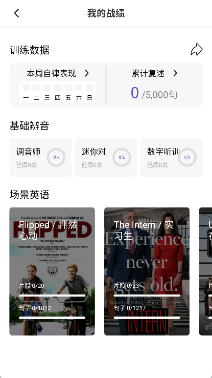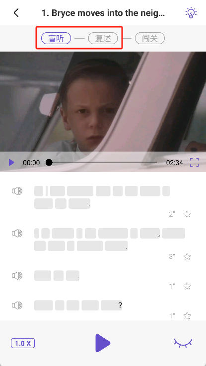 4、还配备了“盲听+复述”功能,借助反复聆听并试着复述视频里的句子,能够明显增强听力与口语水平。