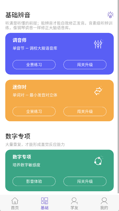 2、“基础辨音”调音师部分增加“自定义”训练。