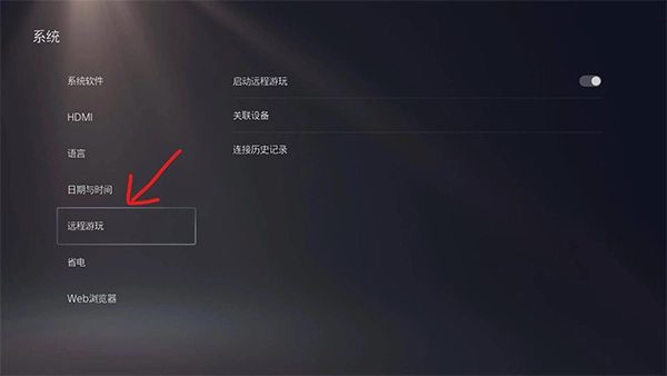 在打开的系统页面中点击【远程游玩】