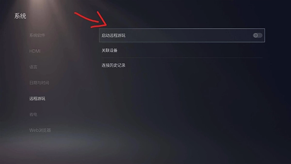 然后将启动远程游玩这个选项开启
