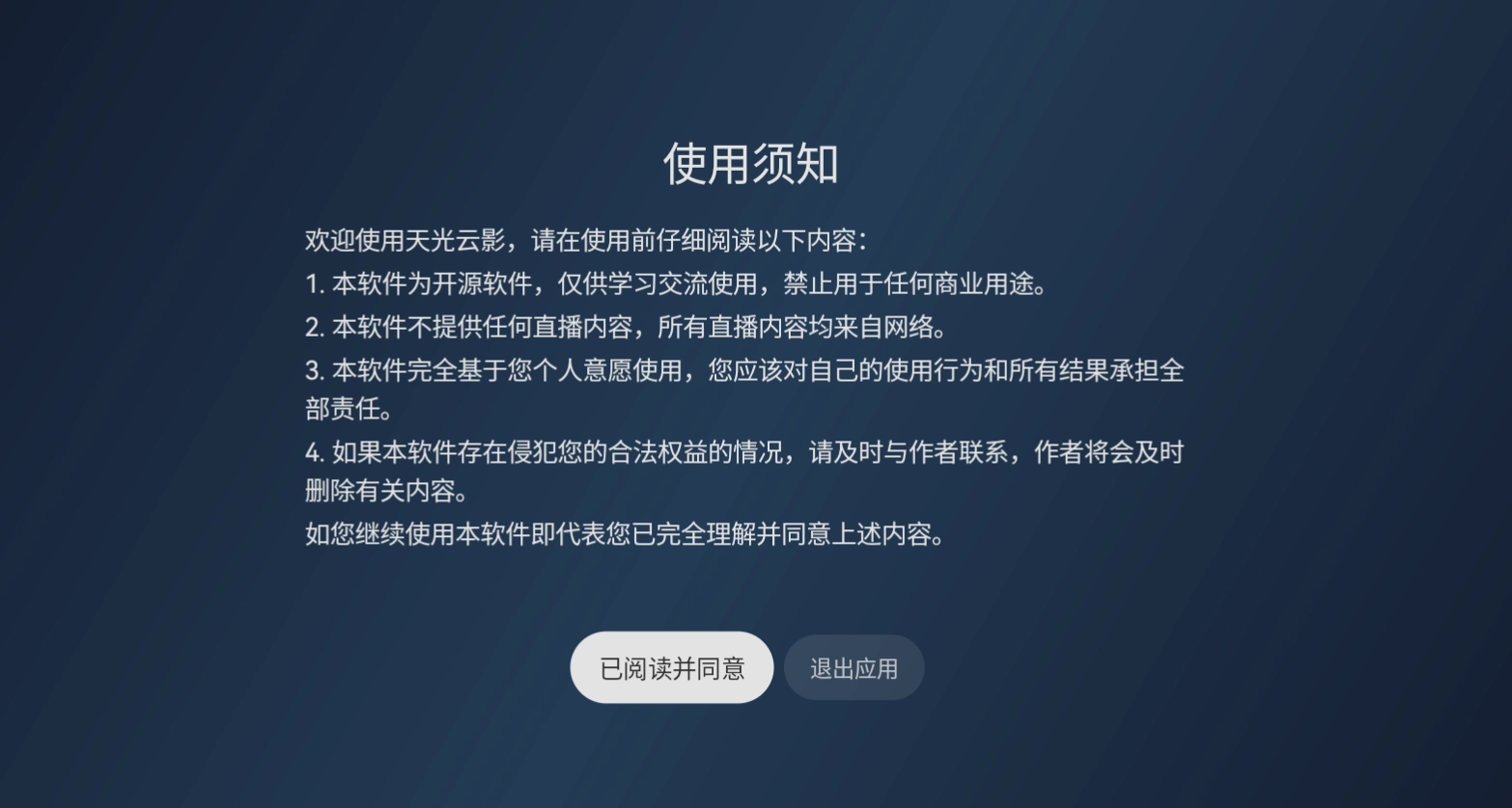 2、通过天光云影在电视端使用,就能轻松享受电视直播服务,不需要额外购置电视盒子或其他硬件设备。