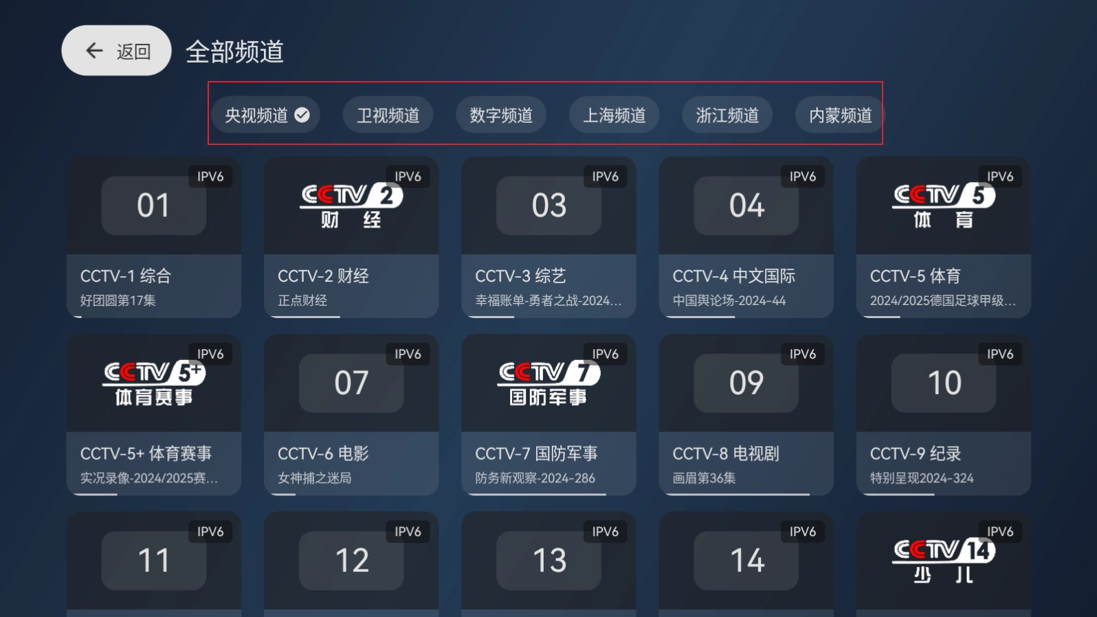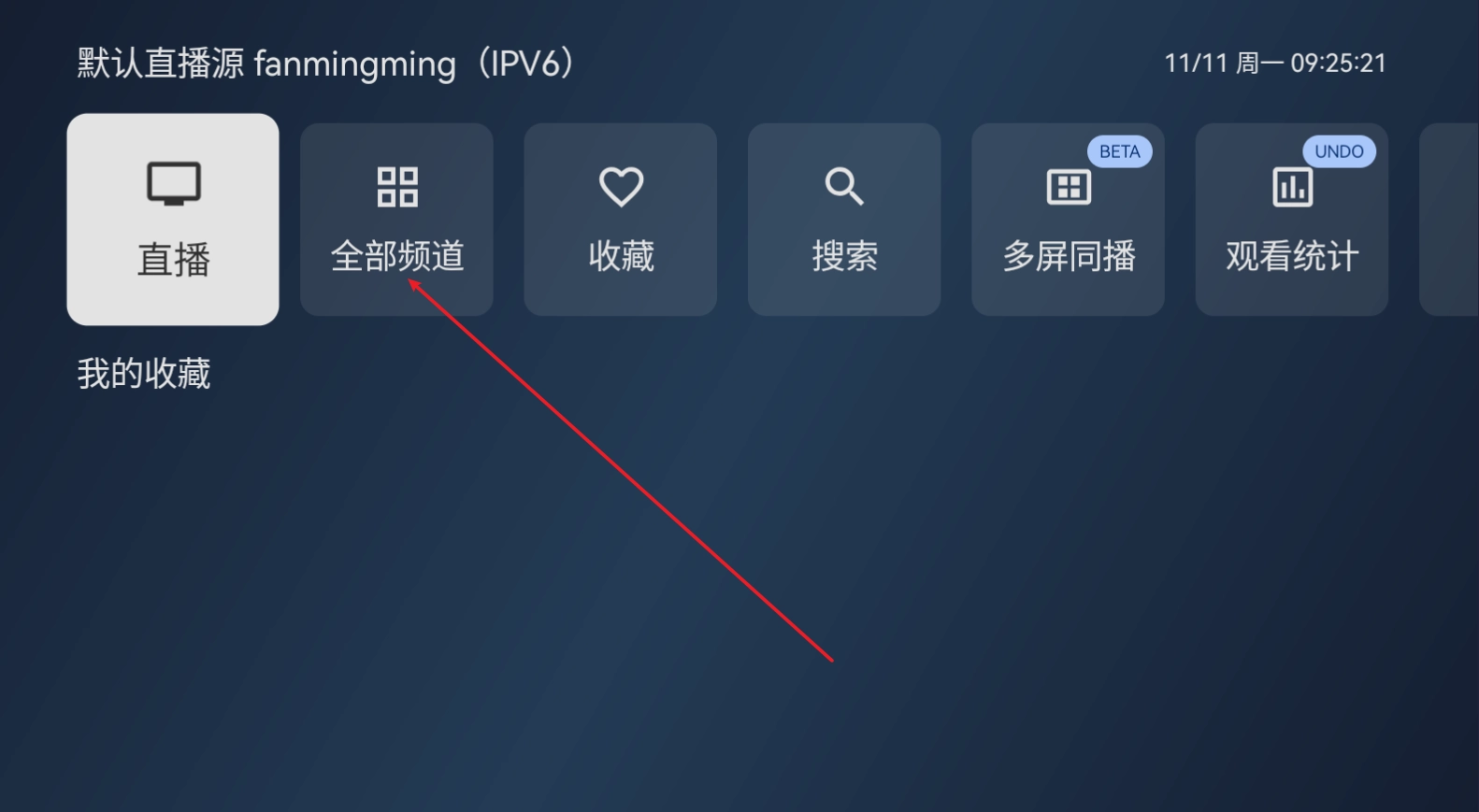 3、如图所示,大家可以依据自身的需求挑选对应的频道来播放内容。