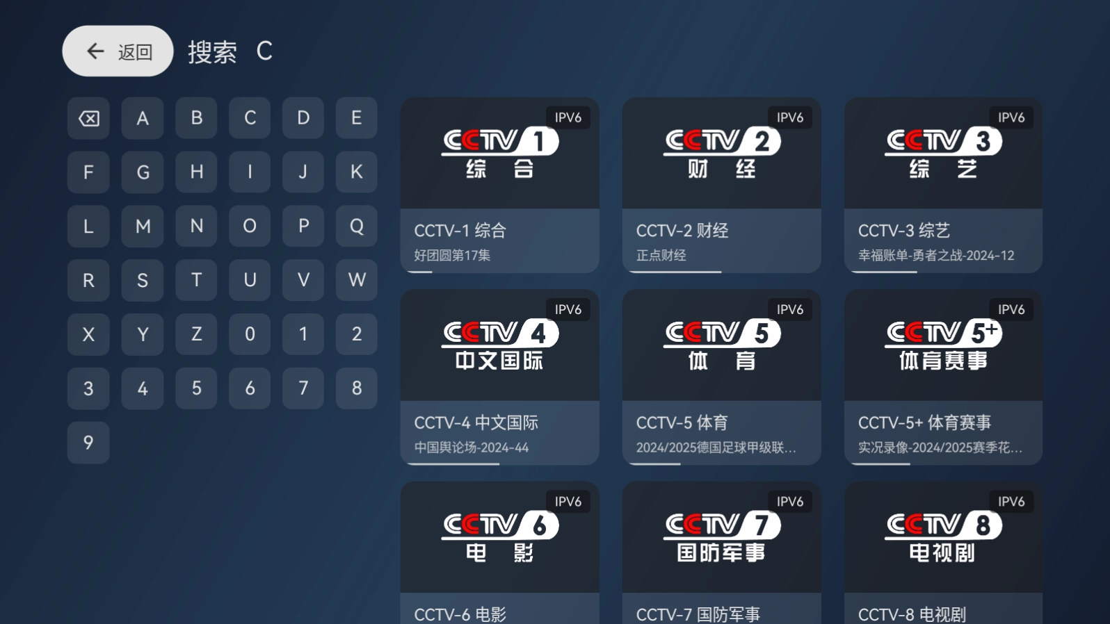 6、最后还能点击搜索框,输入关键字母来查看需要的频道。