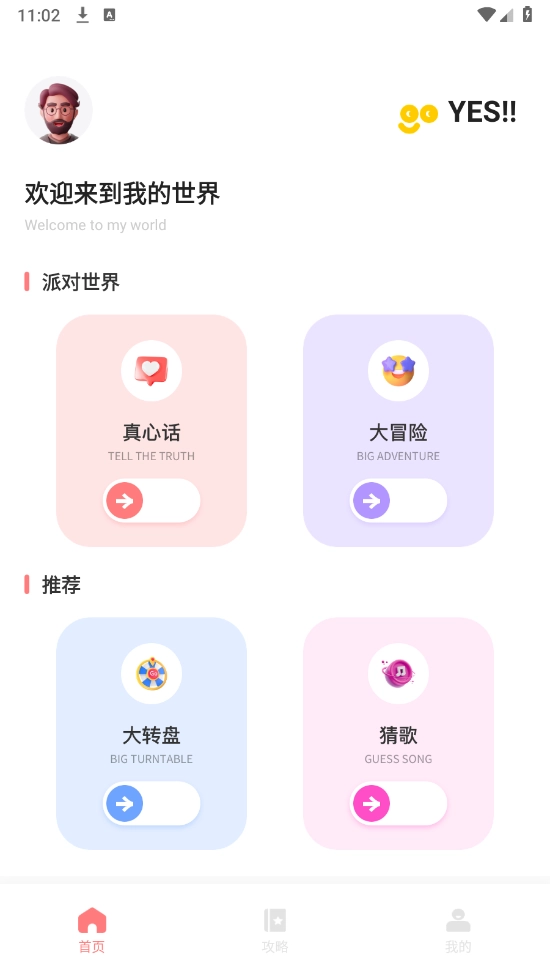 3、打开软件后,首页展示着真心话、大冒险、猜歌等多款小游戏,这些游戏很适合聚会时玩,点击相应游戏就能直接开始体验。