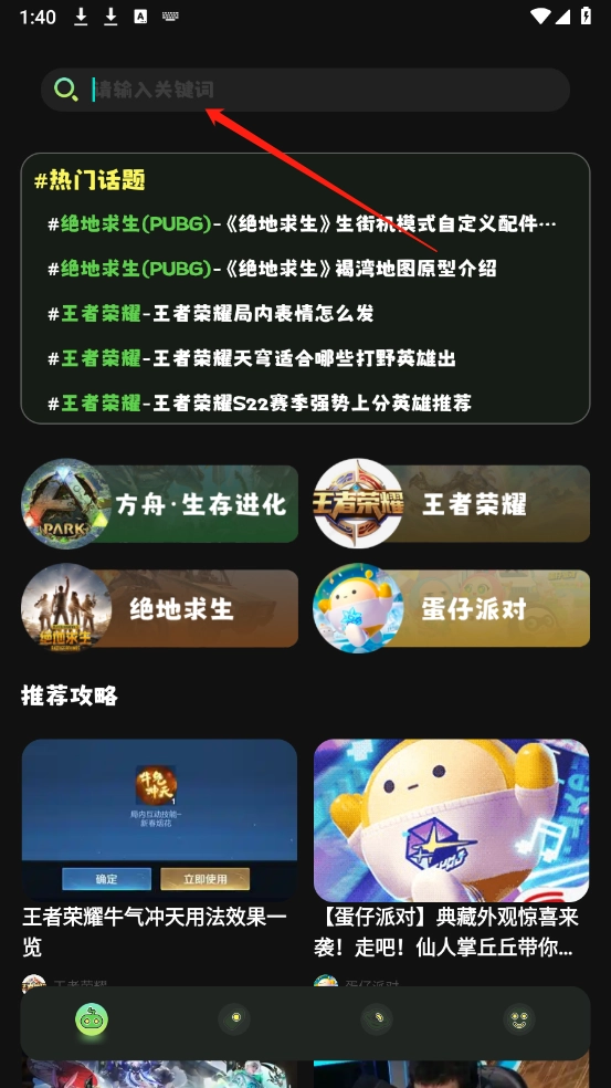 2、进入首页,为玩家提供了很多的游戏攻略。