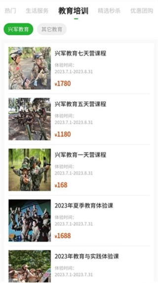 我们聚焦于兴军实践体验课程,致力于为用户打造独特的教育培训服务,用户可通过在线渠道完成报名与下单流程。这些课程不仅蕴含深刻的教育意义,还具备极强的实践性,能够有效丰富用户的精神文化生活。