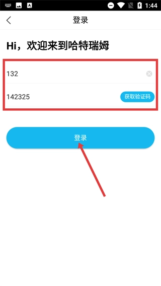 4、在短信验证码登录界面输入手机号和验证码,随后点击【登录】按钮,即可完成哈特瑞姆账号的登录操作。