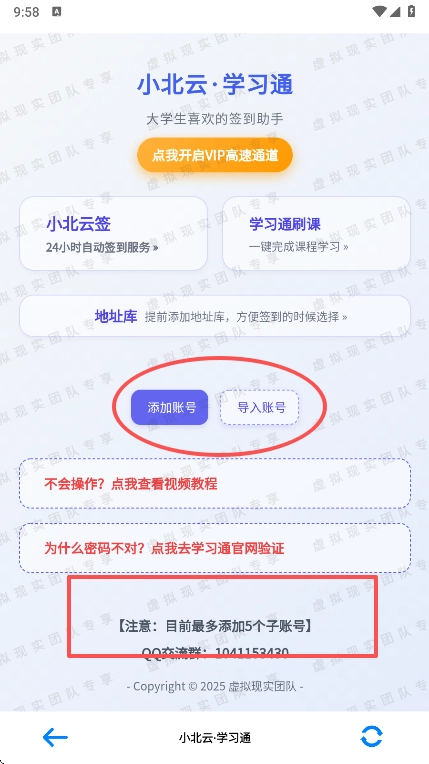 2、接下来需要您添加账号,请注意最多只能添加5个账号哦