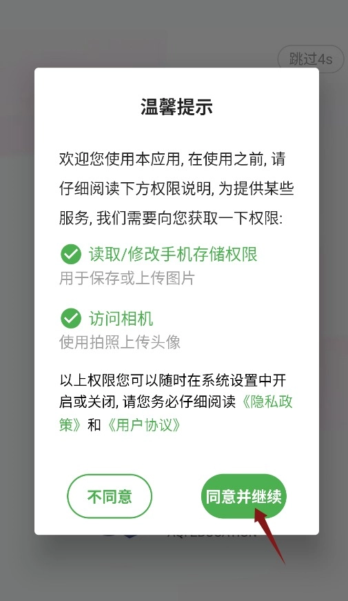 1、首次启动应用需点击同意温馨提示,确认后方可进入主界面。