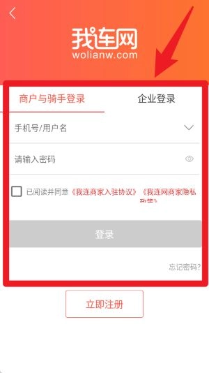 1、在登录页面输入手机号或用户名及密码,勾选同意商家入驻协议与隐私政策后点击登录即可进入系统。