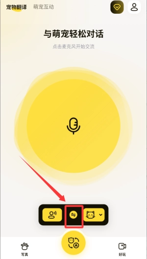 1、使用人宠交流器,用户可录制或上传宠物叫声,获取趣味“翻译”文本;也可将人声转化为模拟的宠物叫声进行互动。