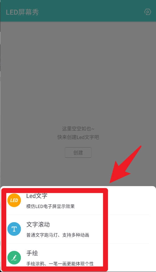 1、在主界面底部可以选择LED模式,不同模式对应不同的创作方式,点击后即可开始编辑个性化的文字效果。