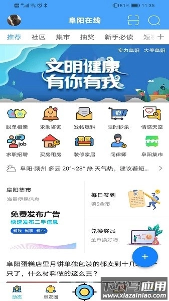 阜阳在线是专门为阜阳本地居民打造的便民生活服务平台,让吃喝玩乐、办事查询变得更简单。这里汇聚了丰富的同城话题和实用版块,既能了解本地新鲜事,又能在线办理各类服务;既能与街坊邻居互动交流,又能感受地道的阜阳文化。从公交查询到违章处理,从天气预警到活动报名,日常所需的功能这里都能找到,真正实现了一站式生活服务。目前已有超百万阜阳人在使用,每天都有大量用户通过平台分享生活点滴、获取实用资讯,想体验便捷的同城生活就来吧。