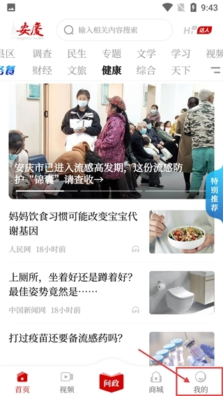 1、在【安庆】软件的主界面,点击底部导航栏中的【我的】按钮,进入个人功能页面,以此为后续的登录等操作做好前置准备。